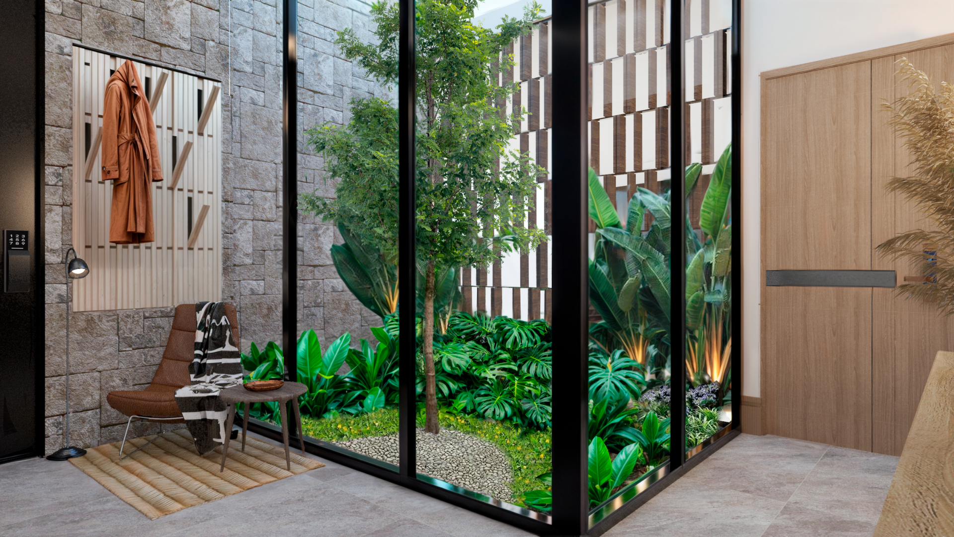 Recibidor, un espacio acogedor que sirve como punto de entrada al hogar, invitando al usuario a adentrarse en el proyecto.