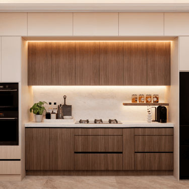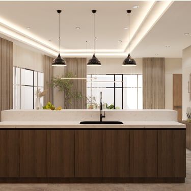 Cocina equipada con alta tecnología y materiales de la mejor calidad, integrada con áreas de almacenamiento y acceso directo a la terraza